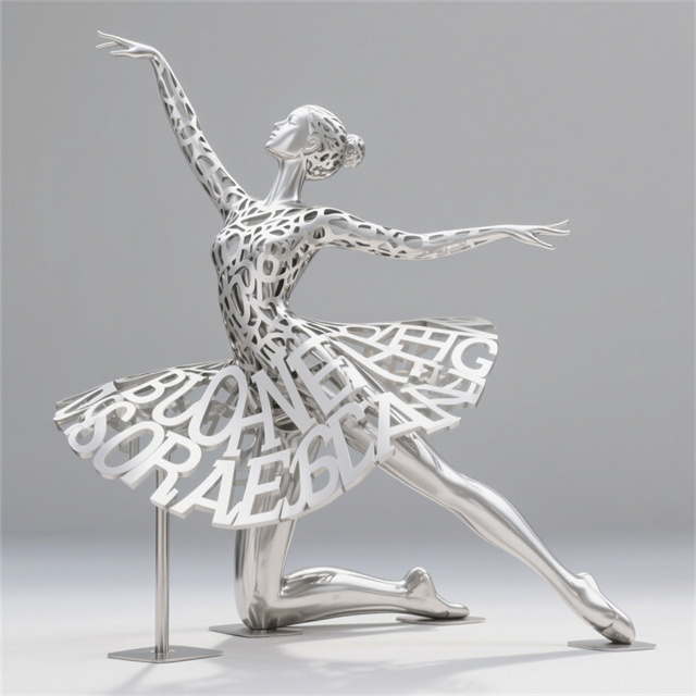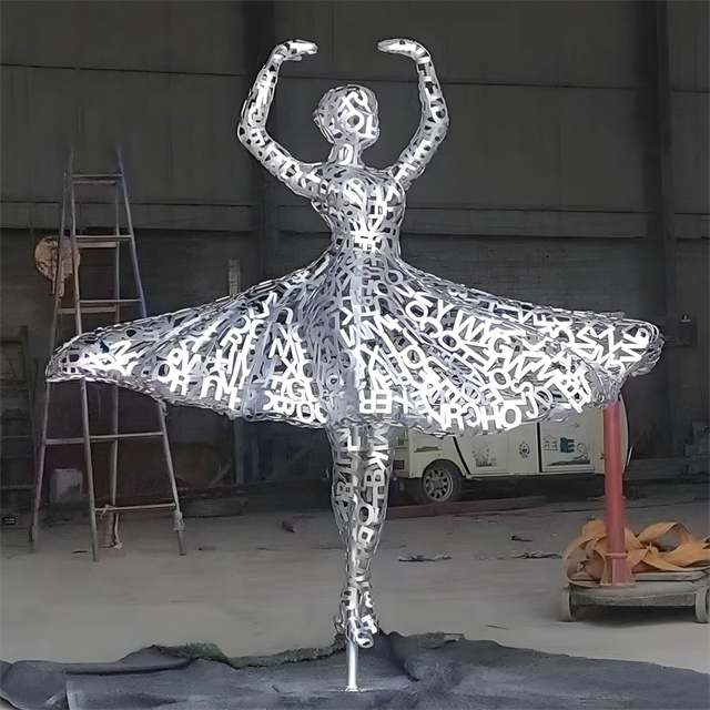 创意镂空字符不锈钢人物雕塑是常见的城市雕塑。不锈钢材质具有耐空气、蒸汽、水等弱腐蚀介质和酸、碱、盐等化学浸蚀性介质腐蚀的特性,因为不锈钢雕塑有诸多的优越性,所以很多的城市雕塑以不锈钢材质为材料。不锈钢雕塑,现在之所以如此受大众的喜爱,和它的艺术观赏性以及材质独特的表现性是很有关系的。