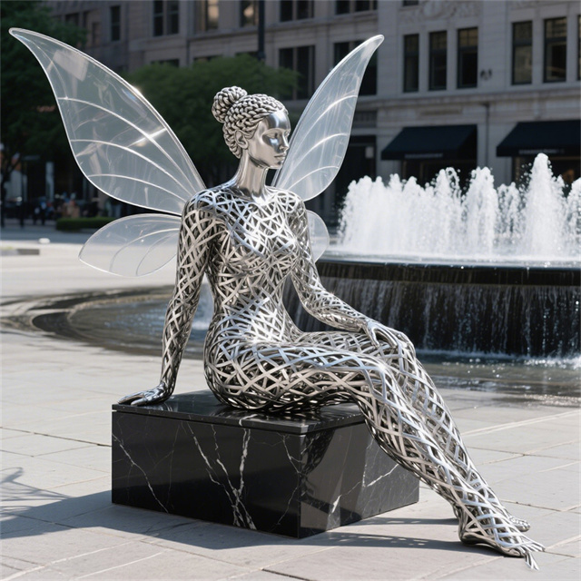 编织不锈钢景观花仙子人物雕塑是常见的城市雕塑。不锈钢材质具有耐空气、蒸汽、水等弱腐蚀介质和酸、碱、盐等化学浸蚀性介质腐蚀的特性,因为不锈钢雕塑有诸多的优越性,所以很多的城市雕塑以不锈钢材质为材料。不锈钢雕塑,现在之所以如此受大众的喜爱,和它的艺术观赏性以及材质独特的表现性是很有关系的。