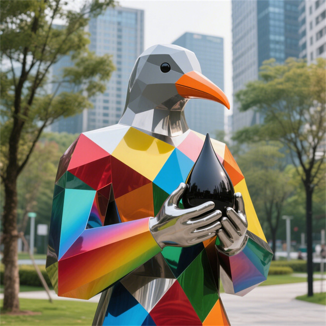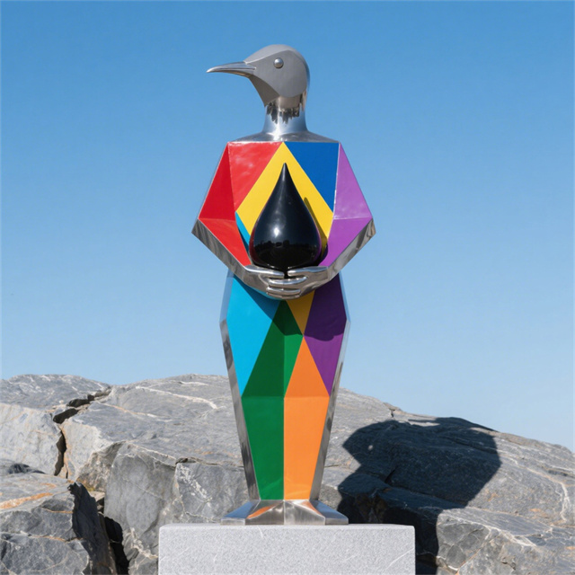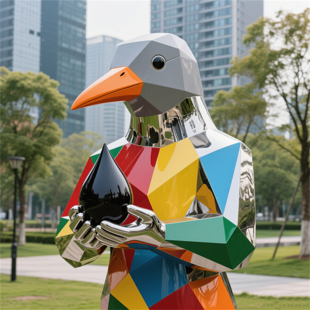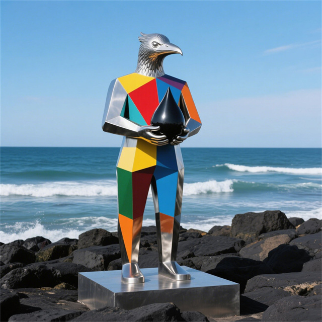 景观不锈钢抽象鹰人物雕塑是常见的城市雕塑。不锈钢材质具有耐空气、蒸汽、水等弱腐蚀介质和酸、碱、盐等化学浸蚀性介质腐蚀的特性,因为不锈钢雕塑有诸多的优越性,所以很多的城市雕塑以不锈钢材质为材料。不锈钢雕塑,现在之所以如此受大众的喜爱,和它的艺术观赏性以及材质独特的表现性是很有关系的。