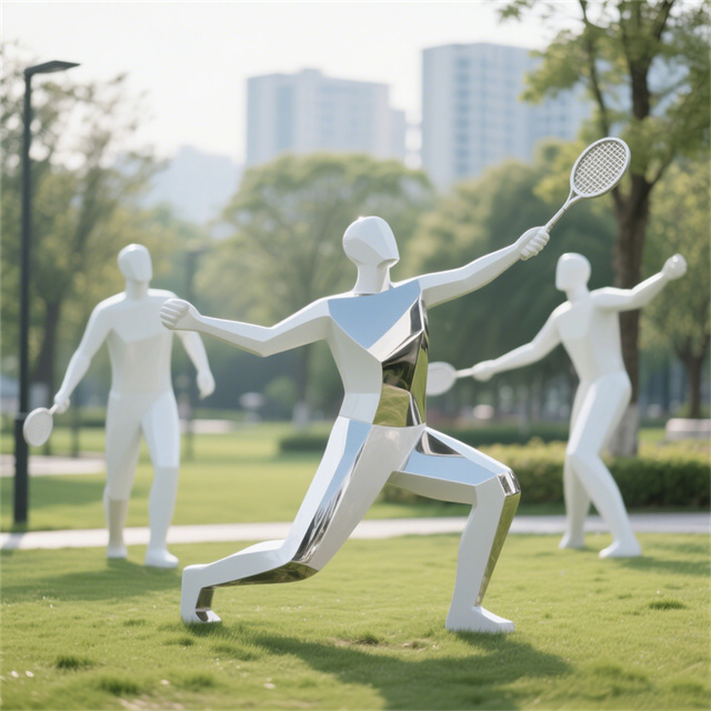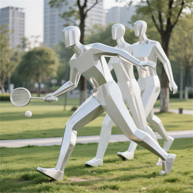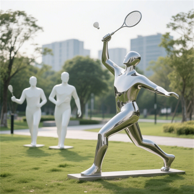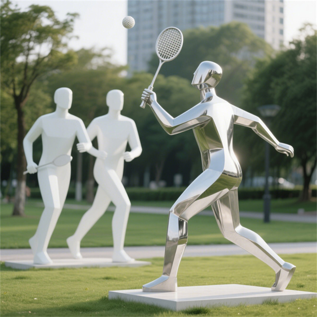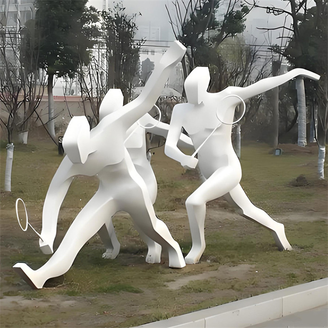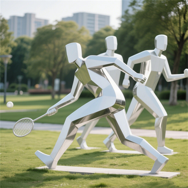 不锈钢切面打羽毛球跑步景观雕塑是常见的城市雕塑。不锈钢材质具有耐空气、蒸汽、水等弱腐蚀介质和酸、碱、盐等化学浸蚀性介质腐蚀的特性,因为不锈钢雕塑有诸多的优越性,所以很多的城市雕塑以不锈钢材质为材料。不锈钢雕塑,现在之所以如此受大众的喜爱,和它的艺术观赏性以及材质独特的表现性是很有关系的。
