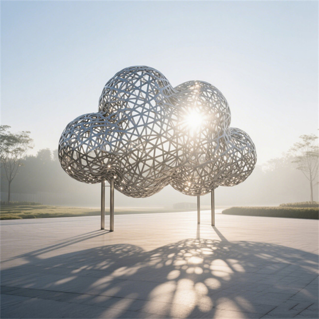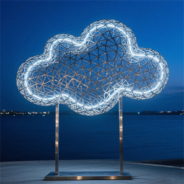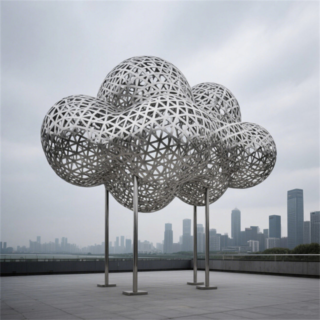 不锈钢镂空云朵景观装饰雕塑是常见的城市雕塑。不锈钢材质具有耐空气、蒸汽、水等弱腐蚀介质和酸、碱、盐等化学浸蚀性介质腐蚀的特性,因为不锈钢雕塑有诸多的优越性,所以很多的城市雕塑以不锈钢材质为材料。不锈钢雕塑,现在之所以如此受大众的喜爱,和它的艺术观赏性以及材质独特的表现性是很有关系的。