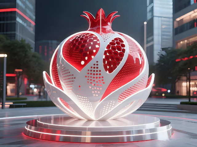 其工艺更是现代技术与传统意蕴的握手。冰冷的不锈钢,经由精确的激光切割与严谨的锻打,化身为最富于温暖寓意的形态。这本身就是一首凝固的现代诗,诉说着工业文明如何重新解读并礼赞古老的农业意象。当夜幕降临,内里的灯光亮起,整颗石榴便不再是吸纳光线的容器,而成了一个自身发光的生命体。光线从万千孔洞中奔涌而出,它照亮了广场,也照亮了自身作为“公共艺术”的使命——它必须与这座城市、与每一位市民发生关联。