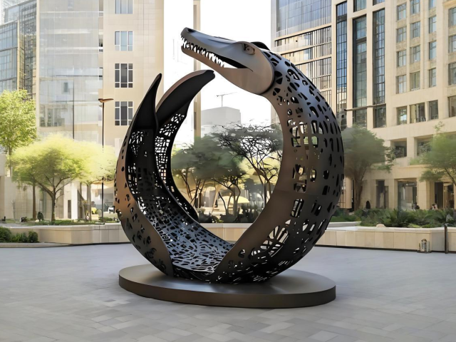 当一抹冷冽的不锈钢弧线划破广场的天空,当抽象的形体在光影中投射出远古的轮廓,一只由金属铸就的鳄鱼,便在城市的心脏地带开始了它静默的呼吸。这已不是简单的装饰,而是一场公共艺术的深度定制,一次将野性张力、现代工艺与场所精神熔于一炉的创造性实践。